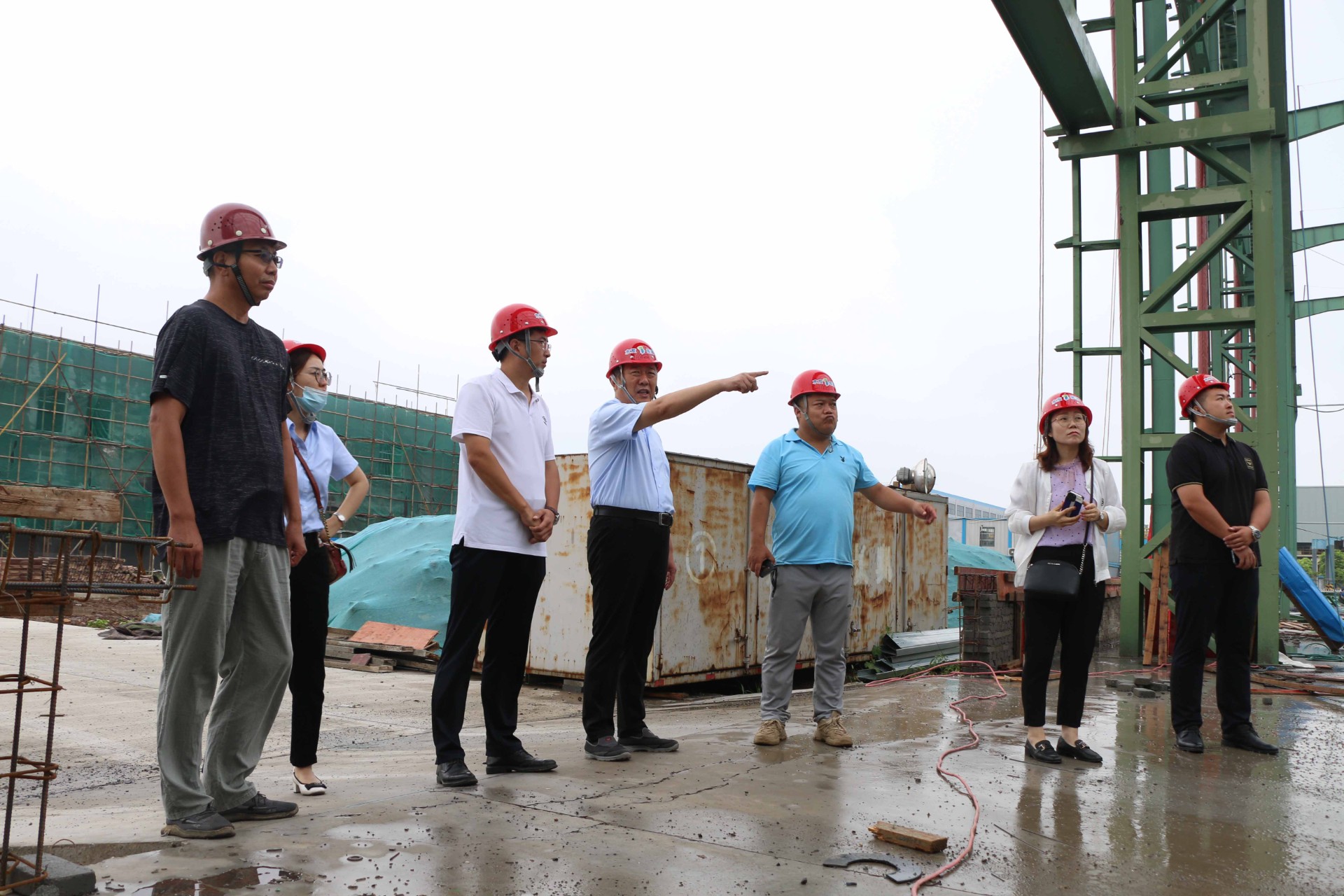 随后黄建喜和集团成本管控小组一同前往施工现场展开调研,分析项目成本开支情况等,检查工地现场安全生产情况。