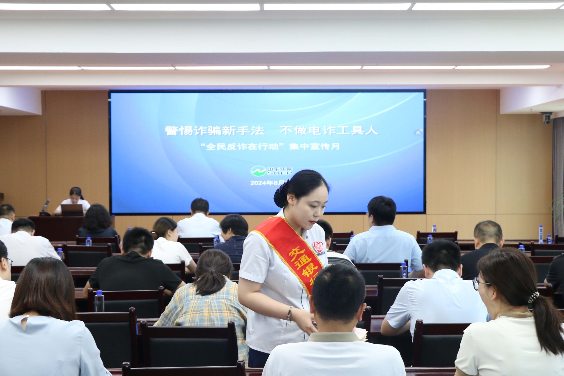 宣讲活动以“警惕诈骗新手法,不做电诈工具人”为主题,邀请了交通银行山东省分行工作人员为大家深刻分析了当前电信网络诈骗的犯罪形势,从新型电信网络骗局案例出发,通过视频图文讲解与知识问答相结合的形式,全方位细致讲解了电信网络诈骗的典型诈骗手段及识别方法、防范技巧等,引导大家树立起安全防范意识、筑牢反诈观念。