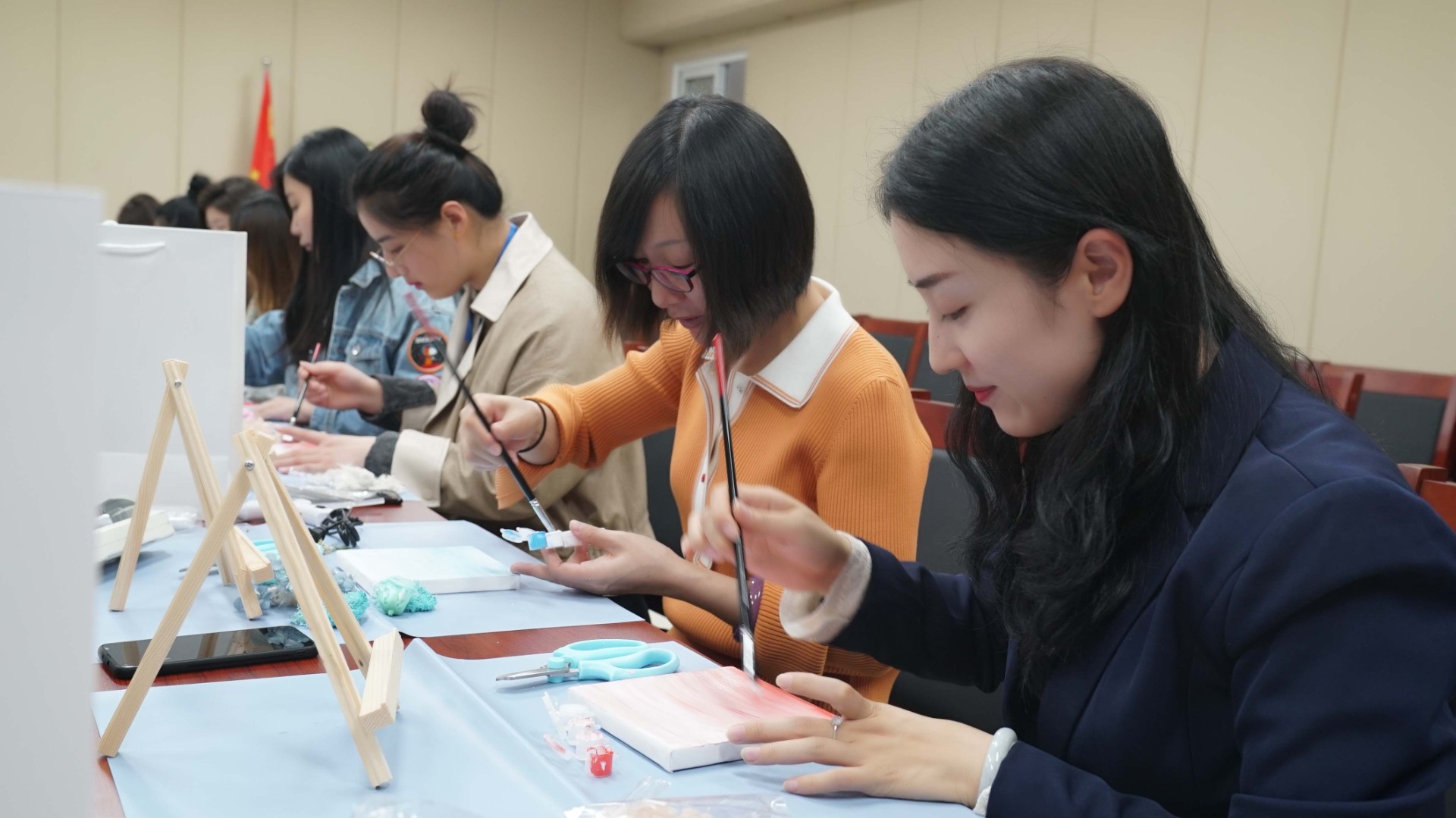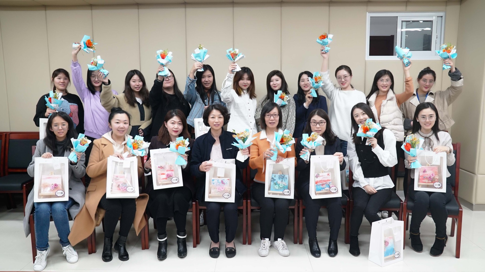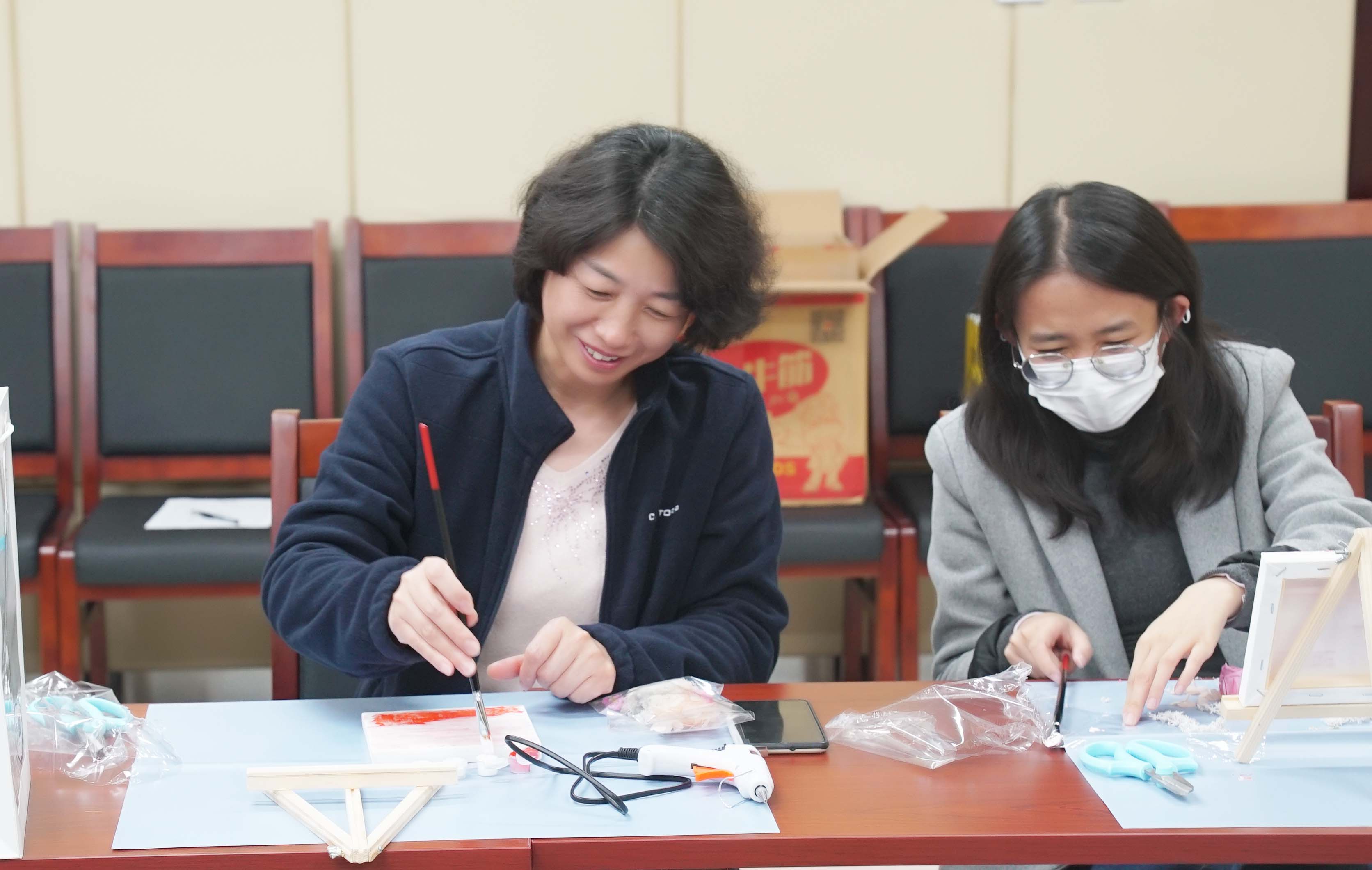 活动邀请了专业花艺师进行活动指导。活动伊始,花艺老师向大家介绍了油画的概念、油画绘画最基本的手法、永生花的花材养护和插花小技巧,对各种辅材的作用、使用方式和注意事项等进行了详细讲解,并结合理论知识进行现场作画示范。随后,女员工在花艺老师的指导下发挥想象力,施展作画技能,创意谋篇布局,结合不同的画布底色和花朵色彩,各显神通。随着时间的流逝,一件件清新淡雅、风格迥异的插画作品随即盛开在女职工的手中。活动尾声,女员工手捧鲜花与自己亲手绘制的插画作品合影留念,为节日增添了靓丽的色彩。