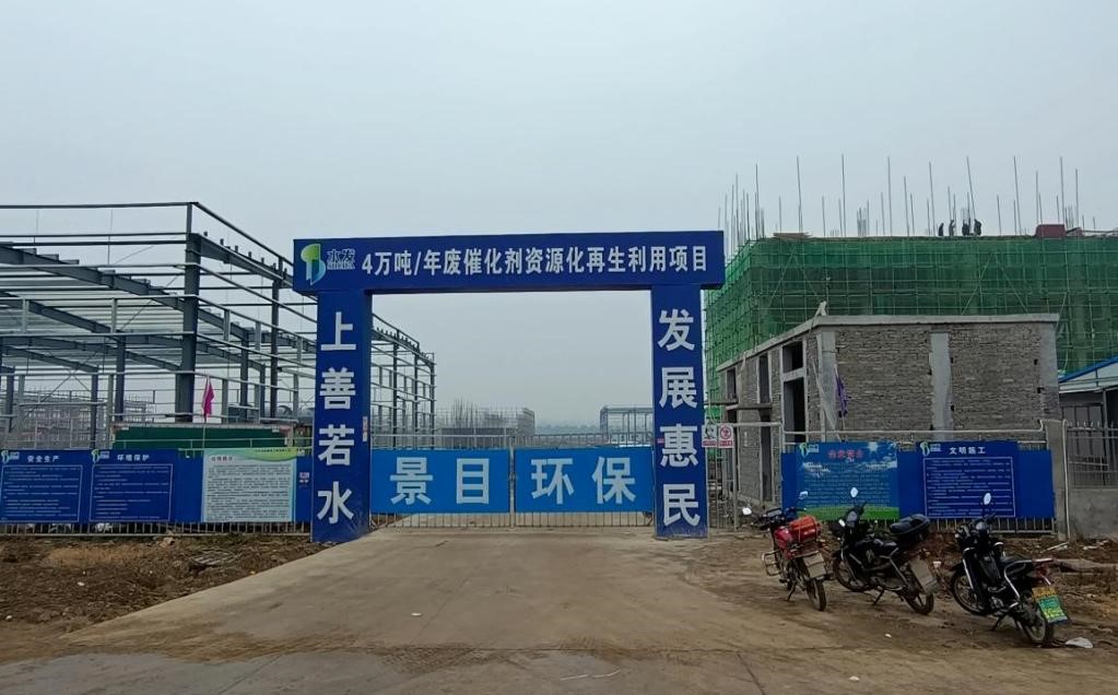 湖北景目环保科技有限公司于2020年8月开始建设,预计2021年10月建成投产,建设脱油、焙烧、湿法冶金、磁选四个生产车间及中心化验室、检维修车间两个辅助部门及综合办公楼。年处理4万吨废催化剂,年回收金属及其化合物约2万吨。