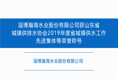 近日,淄博瀚海水业股份有限公司生产技术科、淄博市周村淦清污水处理有限公司被山东省城镇供排水协会分别授予2019年度省城镇供水工作先进集体、省城镇排水先进集体荣誉称号;李静、许锐、王若君三人被评为2019年度省城镇供水工作先进个人。