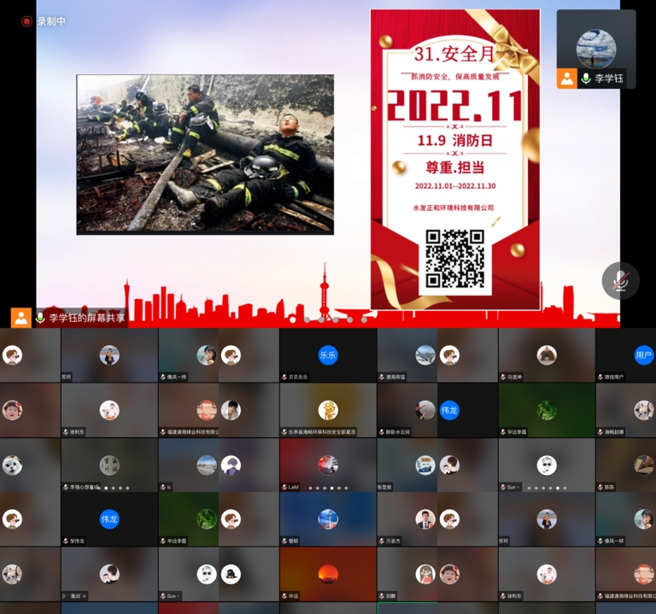 为了深入开展消防安全宣传活动,不断强化全员消防安全意识,提升全员应急处置能力。11月9日,在全国第31个全国消防日到来之际,水发正和环境科技有限公司紧紧围绕“抓消防安全,保高质量发展”活动主题,组织本部及各权属公司开展了线上消防安全知识培训和考试活动。